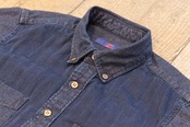 フロントパネルきりかえしシャツ。オリジナルモザイク柄デニムと8オンスのきりかえし。