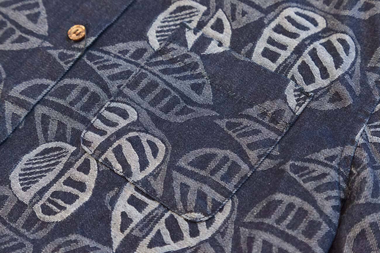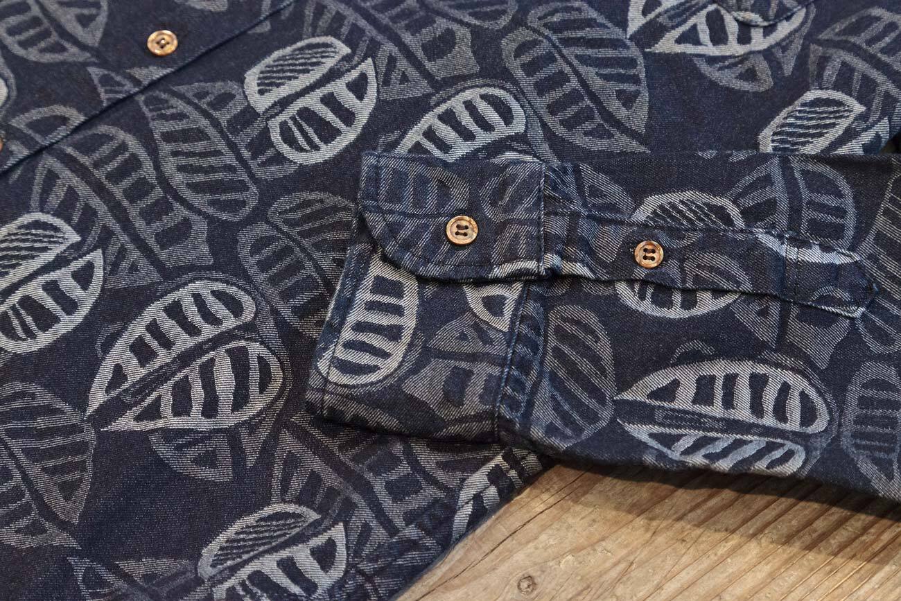 レディースジャガードデニムシャツ。オリジナルリーフ柄デニム。