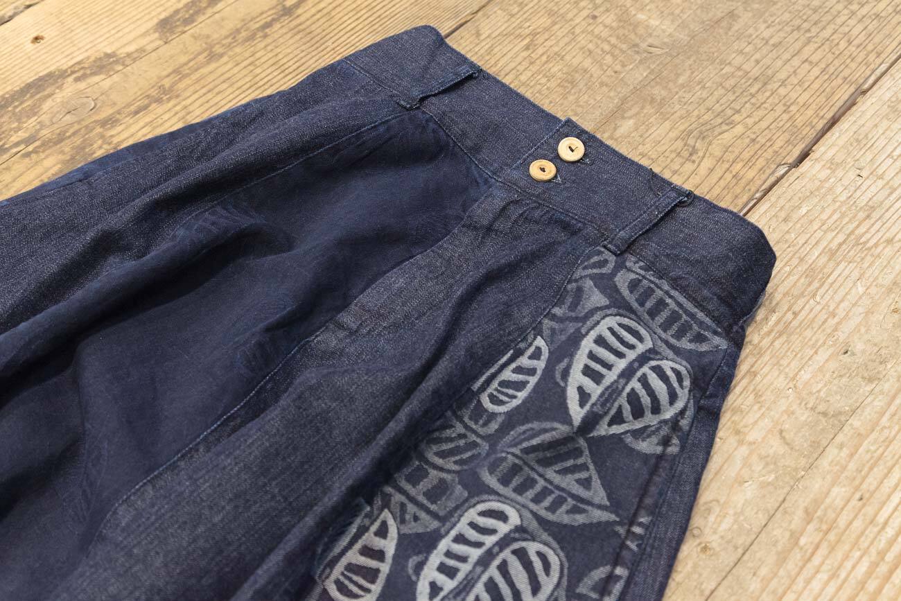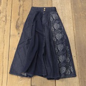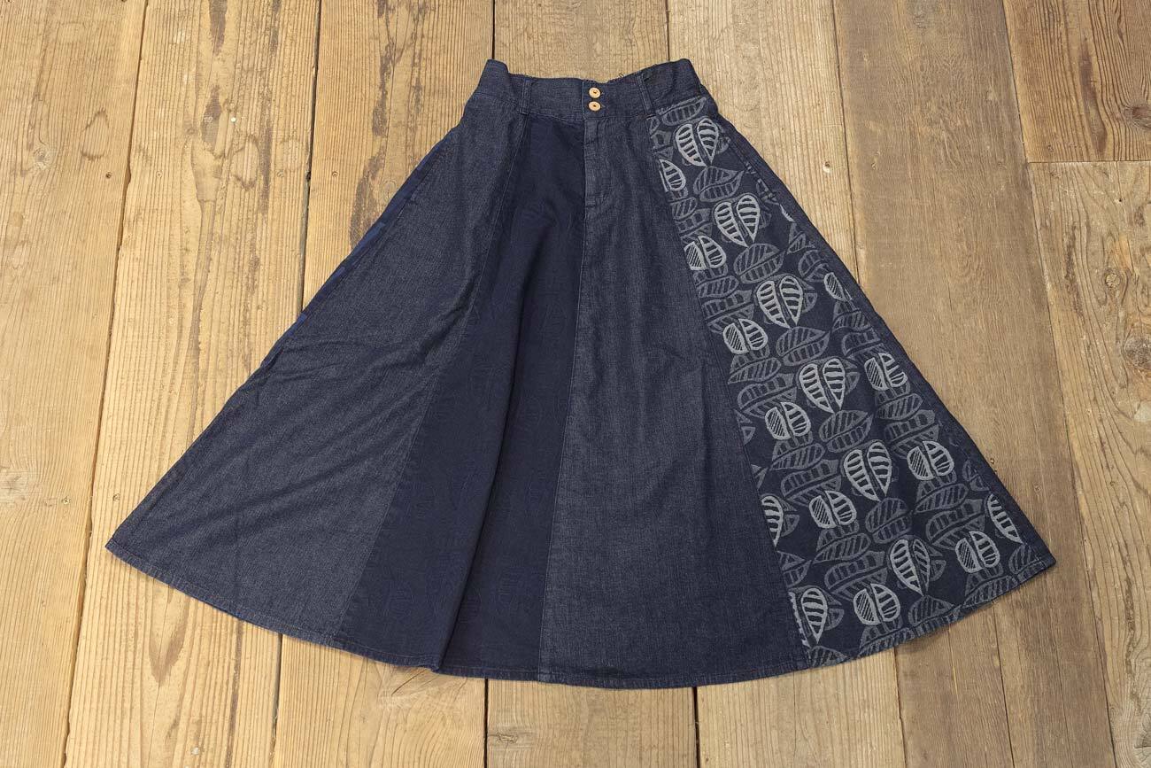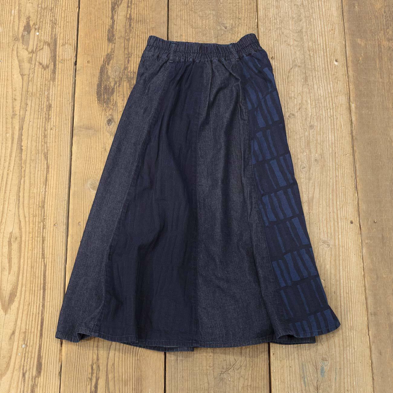 8枚ハギフレアスカート。デニムとジャガードデニムのきりかえし。