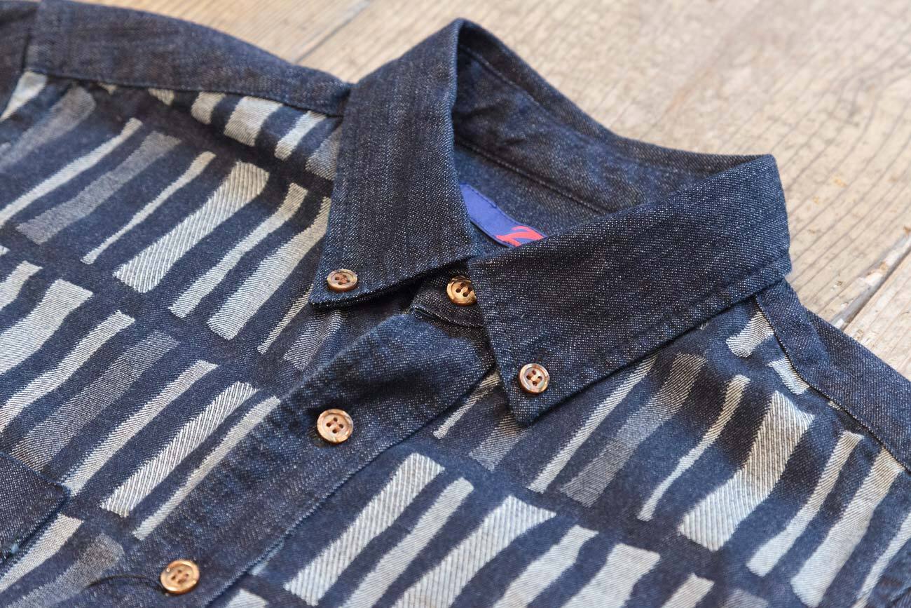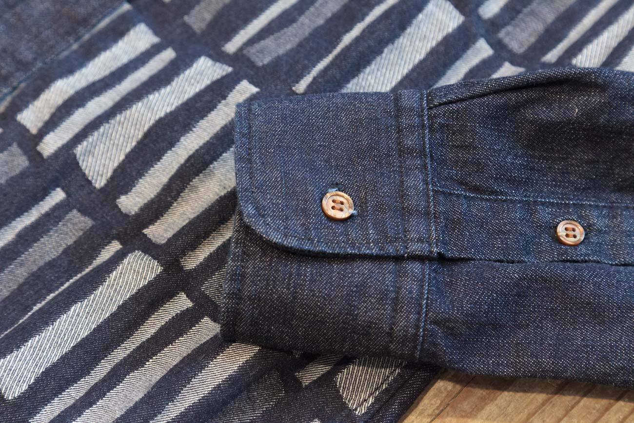 フロントパネルきりかえしシャツ。オリジナルモザイク柄デニムと8オンスのきりかえし。