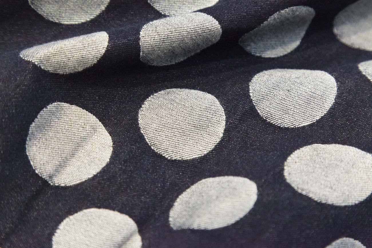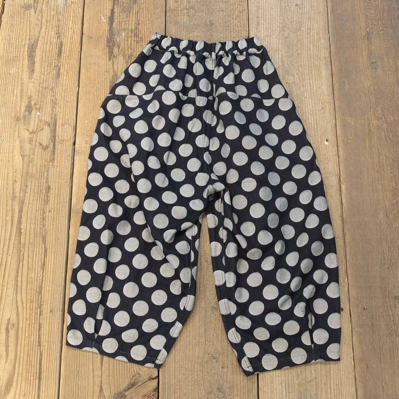 ゆったりシルエットのエッグパンツ。オリジナルドット柄デニム